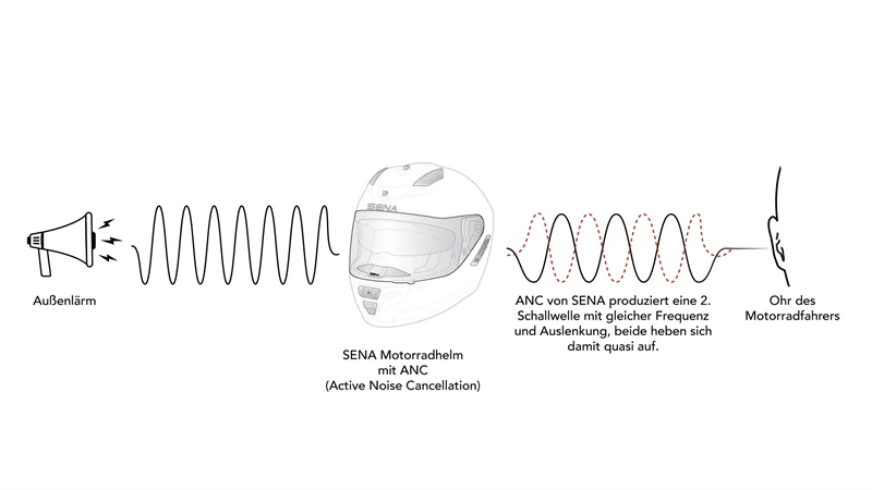 Die erste aktive Geräuschunterdrückung, die von SENA für Motorradhelme entwickelt wurde,