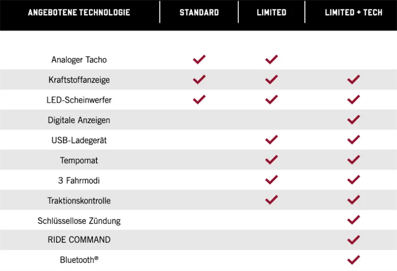 Unterschiede in der Ausstattung: Die Ltd.+Tech kann schon deutlich mehr als die Standard.