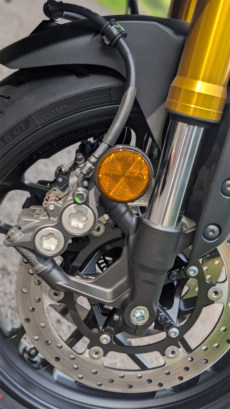 Auch die Bremsen reihen sich ein in die lange Liste der Pro-Punkte der Tracer 7 GT 2025. Sie bremsen akkurat und druckvoll, ohne dass man allzu sehr in den Hebel langen müsste. Der Windschutz der in zwei Positionen einstellbaren Scheibe ist okay, allerdings ist der Unterschied zwischen oben und unten wie so häufig nicht besonders ausgeprägt. Macht nichts, auf der Autobahn konnte ich locker 170 km/h fahren (siehe Video), ohne dass es allzu laut im Helm wurde. Tendenziell würde ich raten, die Scheibe in der Stadt und auf der Landstraße unten zu lassen und auf der Autobahn oben.