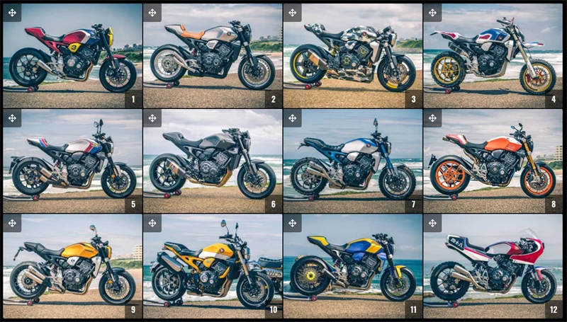 Honda stellt die zwölf aufsehenerregenden CB1000R-Custombikes des letzten „Wheels & Waves“-Festivals zur Abstimmung.