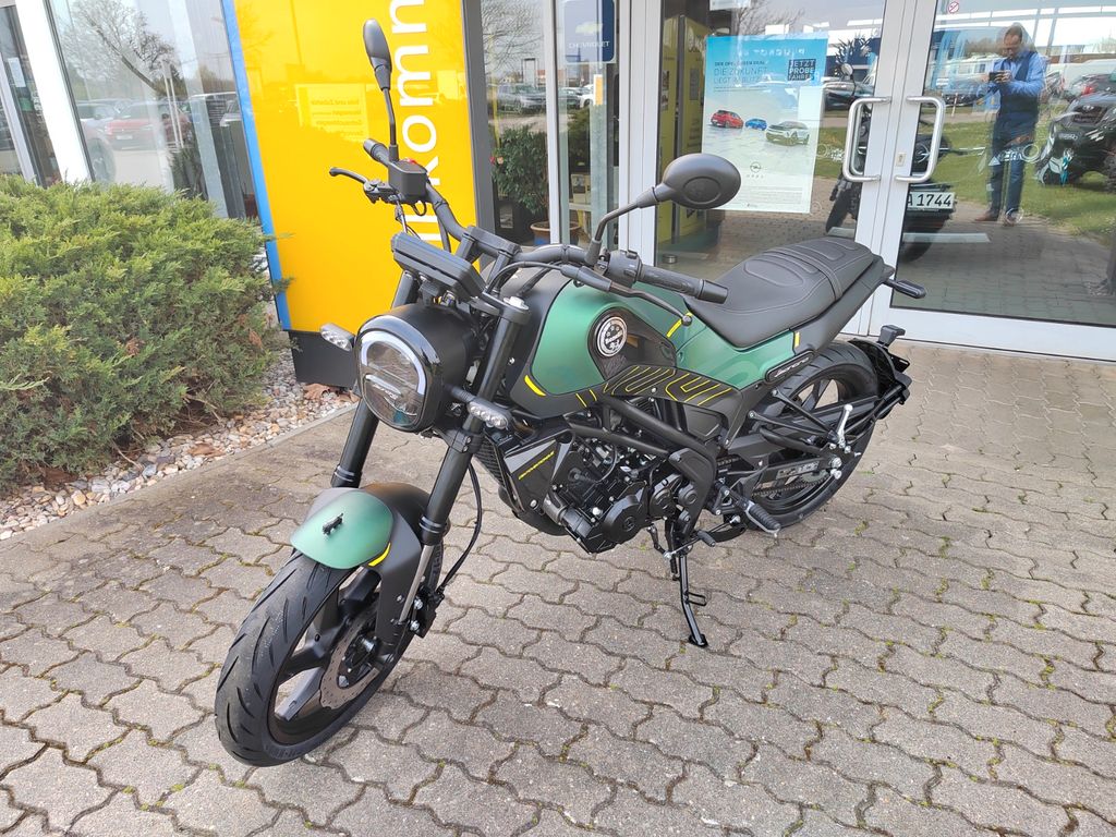 Die Leoncino 125 ähnelt der Leoncino 500 sehr, was der jüngeren Zielgruppe sehr gefallen dürfte. Sie sieht eben nicht ganz so schmal und zierlich aus wie so manch andere 125er. Verfügbar sind drei Farben: Weiß, Grün und Schwarz. Die Farbe wird jeweils durch gelbgrüne oder rote Akzente ergänzt. Uns gefällt die Leoncino 125 optisch schon mal sehr gut, zumal Benelli an vielen Stellen schöne Details wie z.B. Schriftzüge an der Lampenmaske und Motordeckel eingebracht hat. Natürlich darf auch ein "Designed in Italy" Hinweis nicht fehlen, schließlich werden Benellis nach wie vor in Pesaro entwickelt und in China gebaut.
