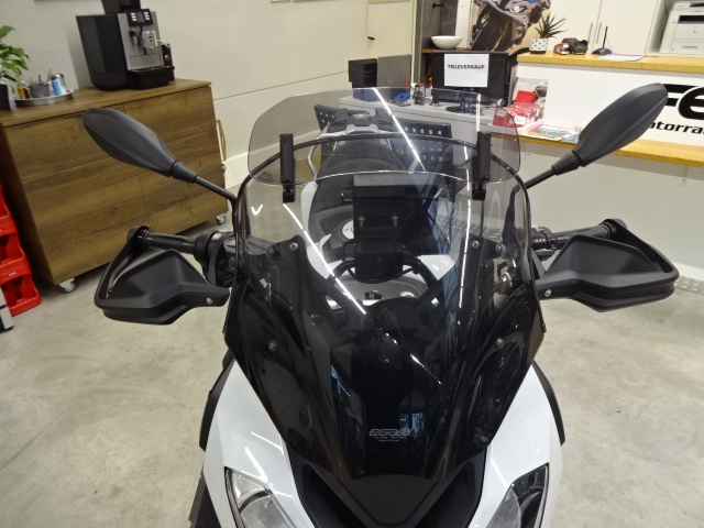 Das Cockpit mit dem 6,5" TFT Farbdisplay kennen wir schon, ebenso die Bedienelemente und die Handy-Connectivity, die bei der neuen XR in Serie dabei ist. Das gilt ebenso für einen USB-Anschluss, Keyless Ride, E-Call, Kurven-ABS, schräglagenabhängige Traktionskontrolle, Fahrmodi, Motorschleppregelung, Berganfahrhilfe und sogar das elektronisch verstellbare Fahrwerk (Dynamisches ESA).