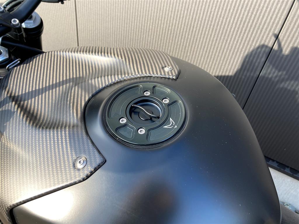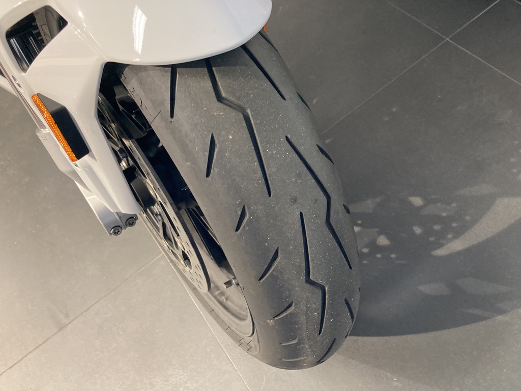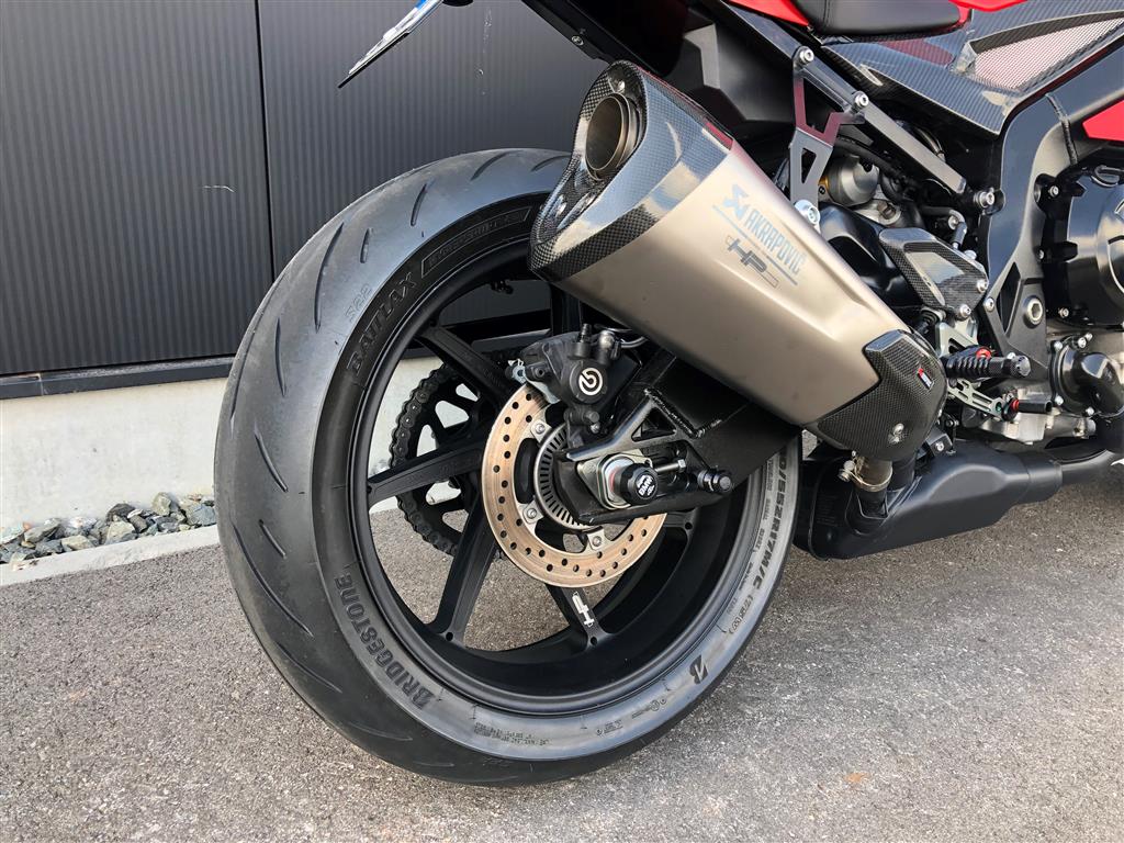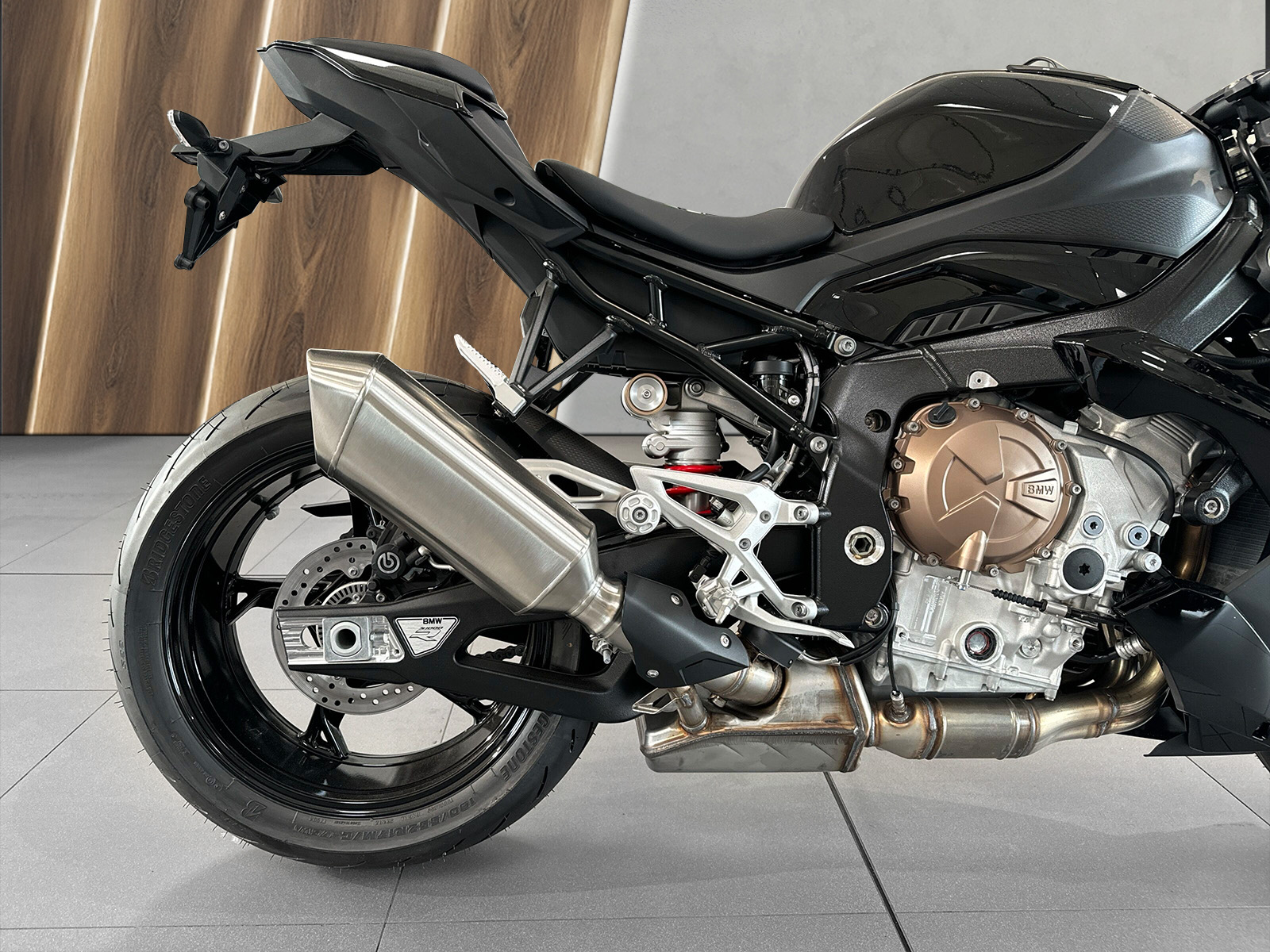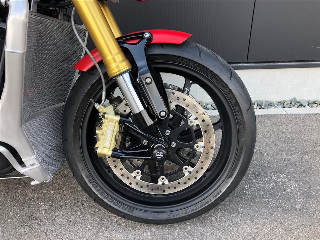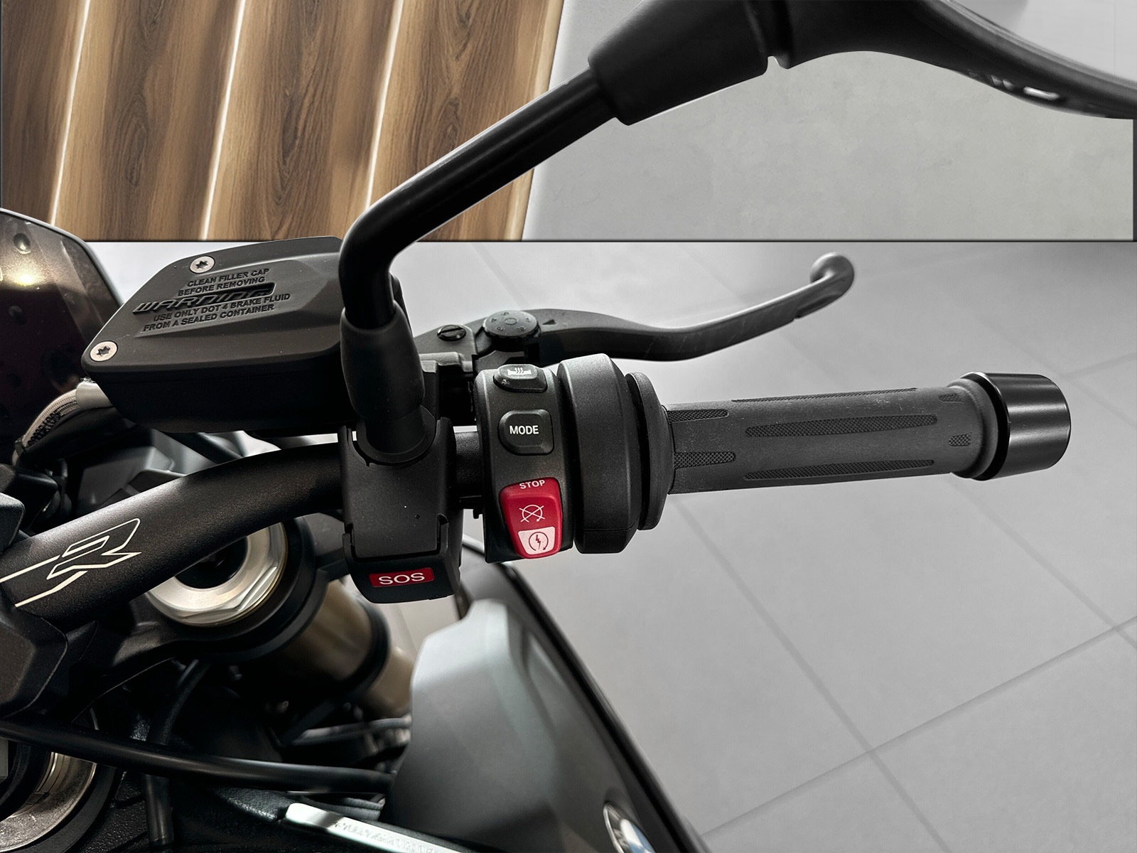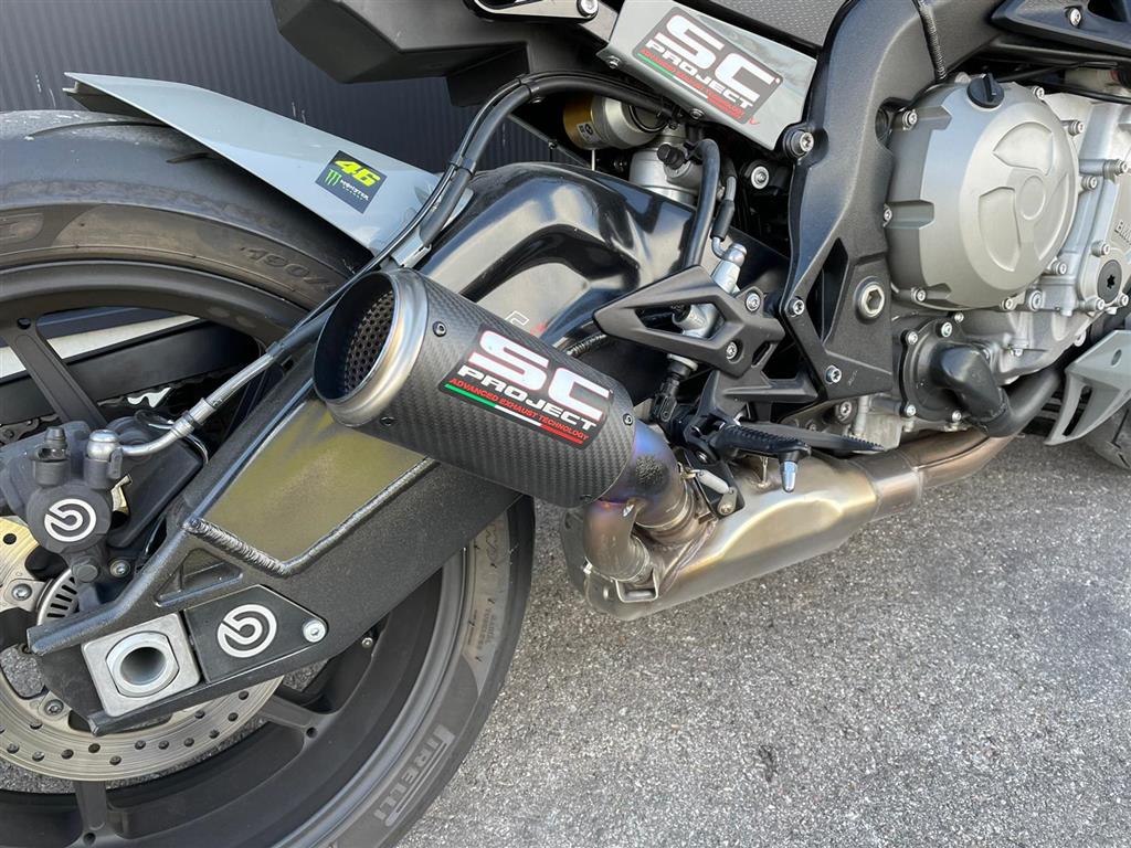 Da steht sie. Man erkennt das neue Modell auf Anhieb an der neuen Lampenmaske, alle Leuchten strahlen nun mit LED-Technik. Die gedrungene und gestreckte Optik wurde beibehalten, man ahnt schon allein beim Anblick, dass hier gleich die Post abgeht. Es gibt die S1000R in drei Farbvarianten, wobei die schicke weiß-blau-rote Version im "M-Paket" auch gleich noch Schmiederäder, Akrapovic-Sportschalldämpfer, Sportsitz und die empfehlenswerte weil pflegeleichte Endurance-Kette mitbringt - für einen Aufpreis von 2.800 Euro! Wer Carbonräder ordert, legt nochmal 2.100 Euro drauf - puh!