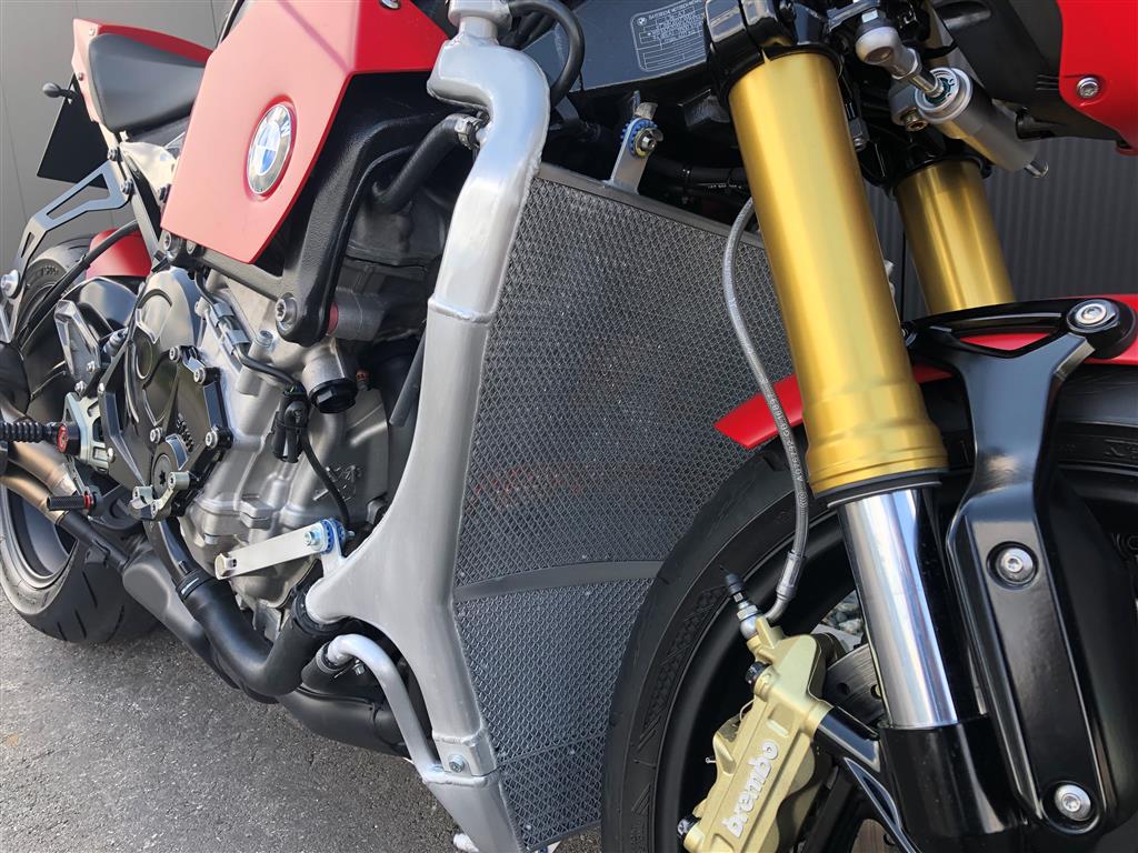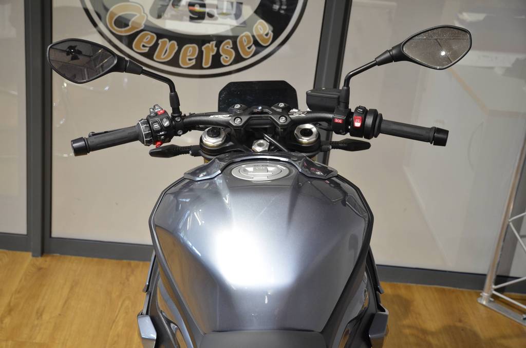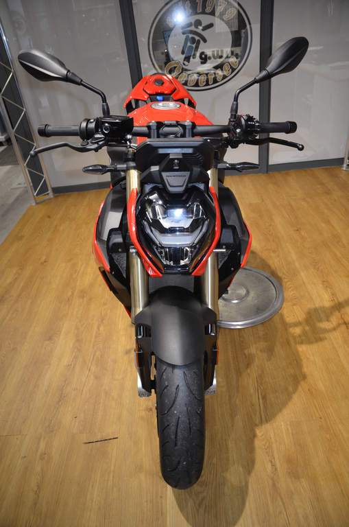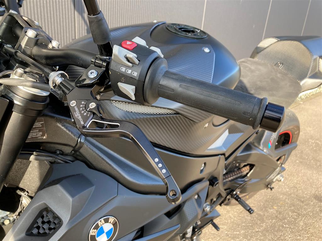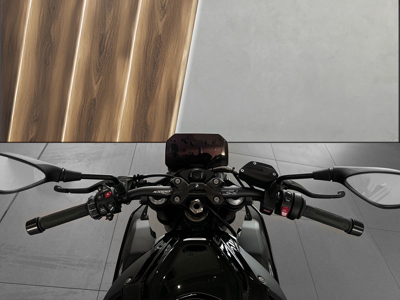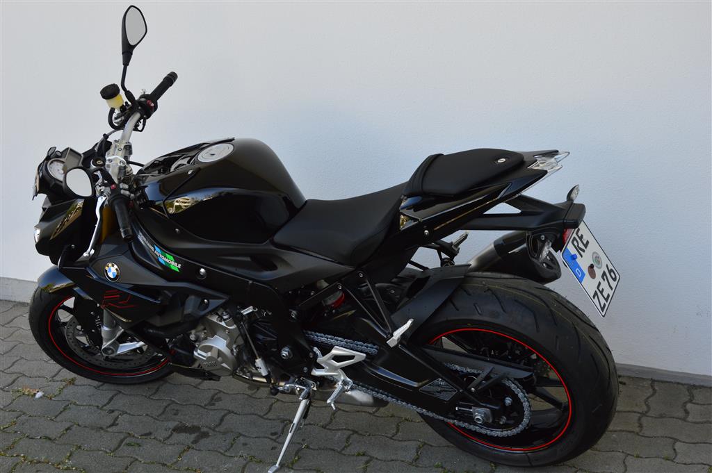 Im Gegensatz zu den meisten anderen Power-Nakedbikes sitzt man auf der BMW sehr, sehr sportlich. Die Fußrasten sind relativ weit hinten, der Lenker ist weiter vorne und tiefer angebracht als üblich. Das ergibt eine deutlich nach vorne geneigte Sitzposition mit tendenziell spitzerem Kniewinkel. Streetfighter-Puristen werden sich denken "wieso sitze ich hier nicht so aufrecht wie sonst?", Sportler werden denken "geil, genau wie auf der RR, nur ohne Verkleidung". In der Tat erinnert die Sitzergonomie an das SuperSport-Schwestermodell, nur halt nicht ganz so radikal.
