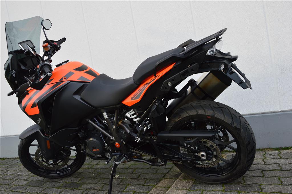 Damit lassen sich, wenn nötig, auch mal längere Autobahnstrecken ausgezeichnet meistern. Und das auch mit ausreichend Zuladung, sei es in Form von Gepäck oder Sozius, welcher ebenso sehr komfortabel Platz auf der Maschine findet. Aber damit nicht genug. Auch beim Kurvenräubern macht die KTM eine gute Figur. Da sollte man sich von Ihrem etwas bulligen Äußeren keineswegs täuschen lassen.