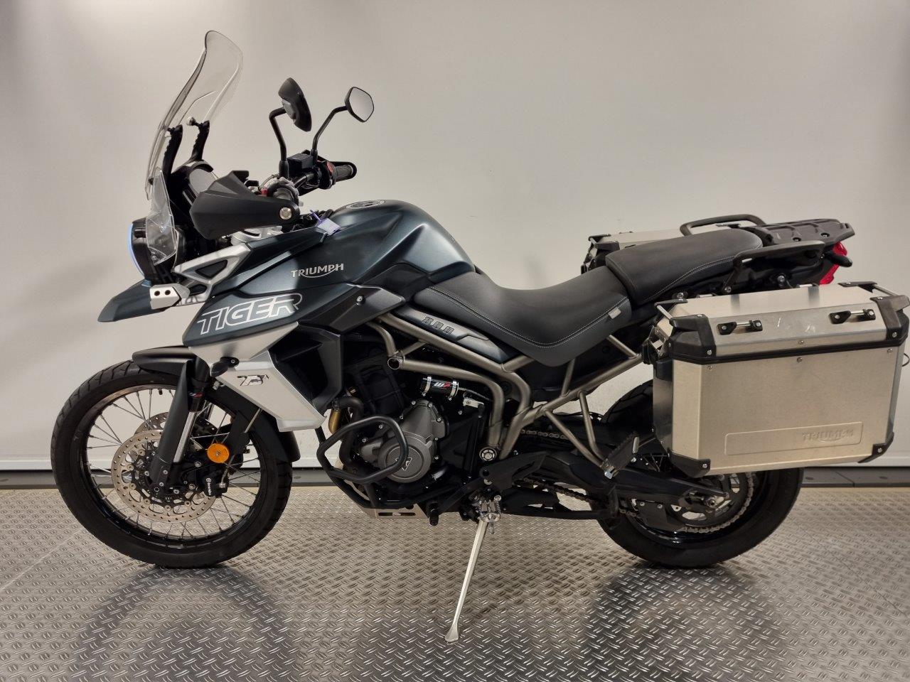 Volle Hütte also, da fragt sich der Kenner bange, ob die 800er an Übergewicht leidet? Es sind immerhin 232 Kilo die der Händler da ausliefert, was aber in der Adventure-Klasse am oberen Ende in Ordnung geht. Ins Gelände, wo die überschüssigen Pfunde in Pfund-Sterling aufgewogen werden, fährt mit den Dingern eh keiner. Die Triumph, das wird an der Ausstattung deutlich, versteht sich als Tourer.